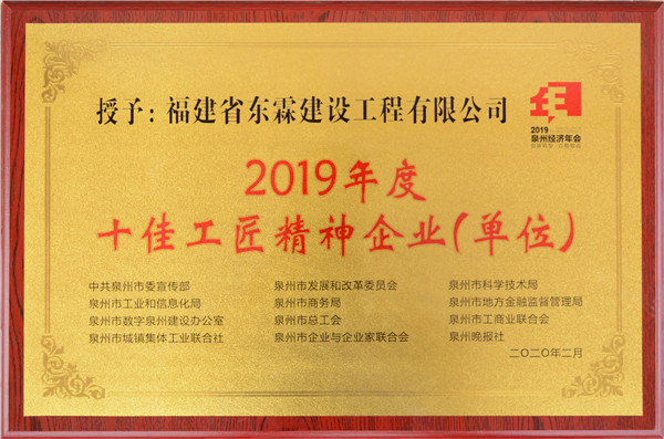 2019年度十佳工匠精神企业(单位)