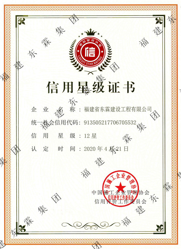 中国施工企业管理协会信用星级证书