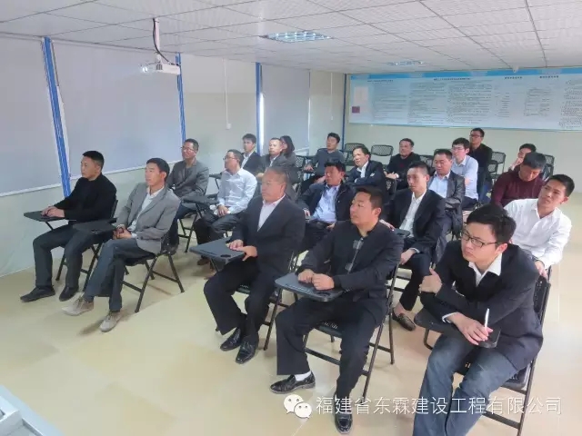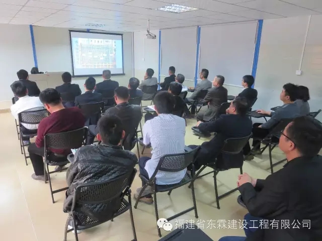 福建东霖建设工程集团于2016年4月3日14:00在东霖企业总部大楼7层多媒体会议室召开了2016年第一季度工作总结会议,各职能部门、各项目经理部等主要负责人参加了会议,并观摩了企业的建筑工人职业技能培训考核基地。