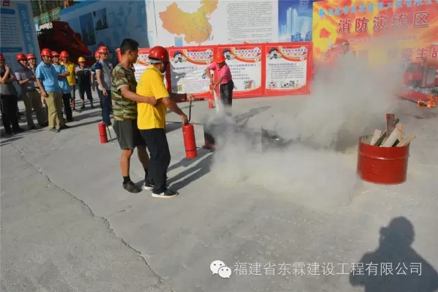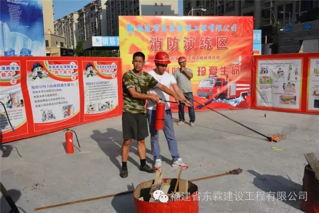 福建东霖建设工程集团于2016年6月22日下午特邀南安市公安消防大队水头中队在许林片区安置房A地块工程项目部举办“关注消防、珍爱生命”为主题的消防演习活动。