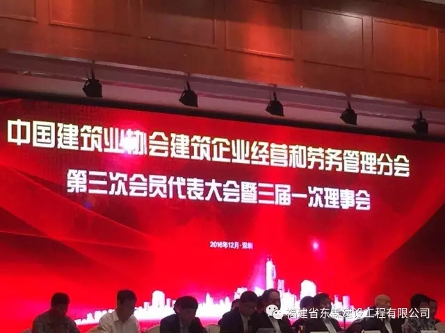 2016年12月22日,中国建筑业协会建筑企业经营和劳务管理分会第三次会员代表大会暨三届一次理事会在深圳胜利召开。