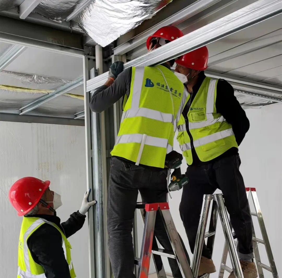 2022年3月25日,新半岛官方网站组建一支由22人组成的突击工作队,由钟振生带队入场泉州市快捷健康驿站(白沙)建设工地参加突击作业。2022年3月31日新半岛官方网站再派出第二批37人进入现场参与施工;台商快捷健康驿站建设工期紧、攻坚任务重,为了保障快捷健康驿站尽快投入使用,东霖突击队员加班加点,星夜奋战与时间赛跑。