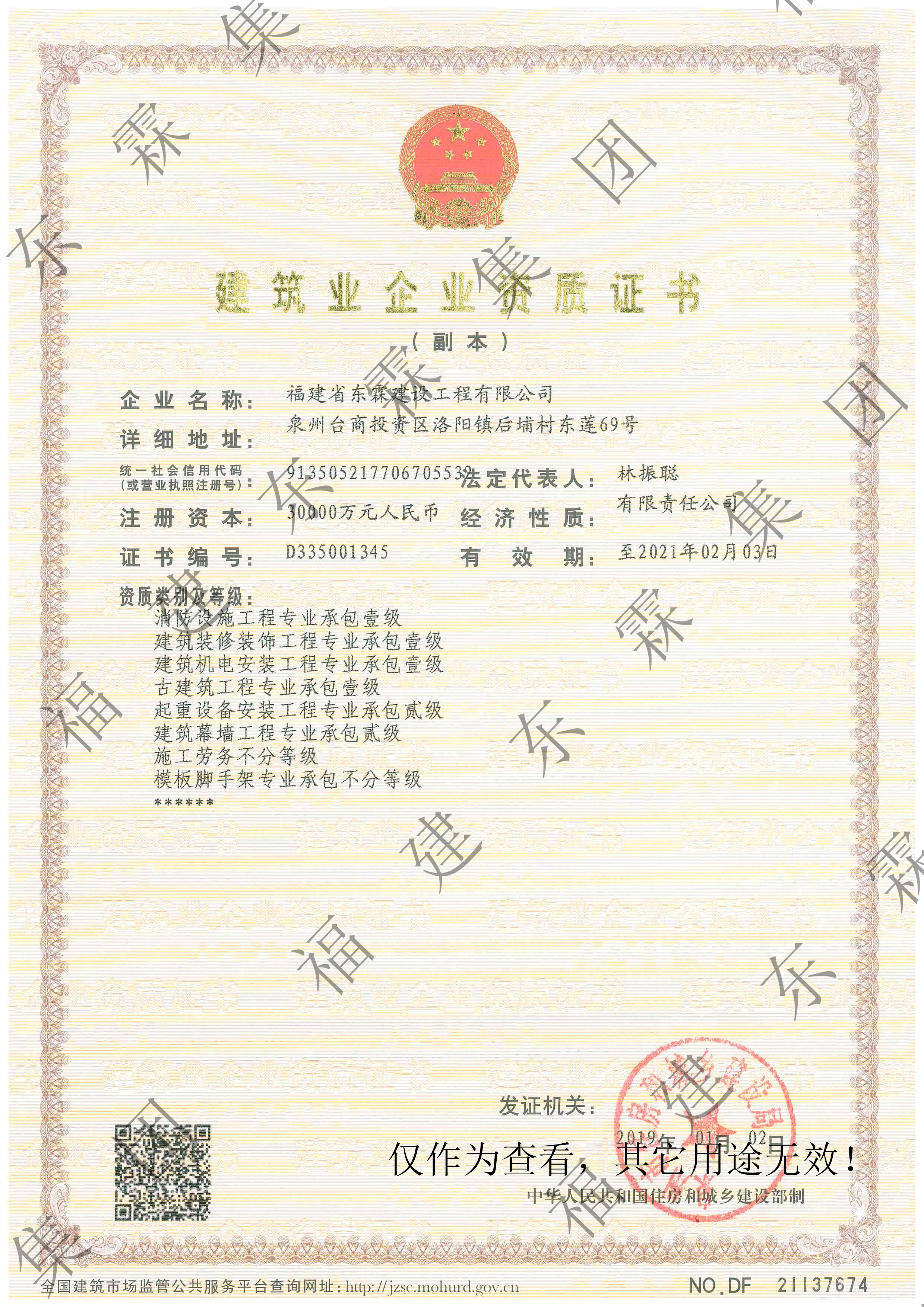 福建省东霖建设工程有限公司资质1